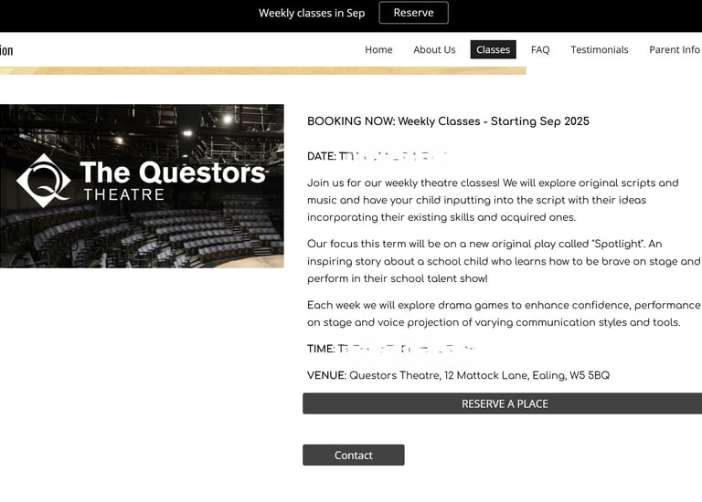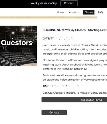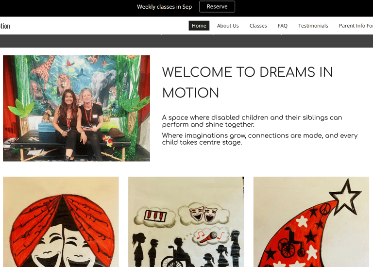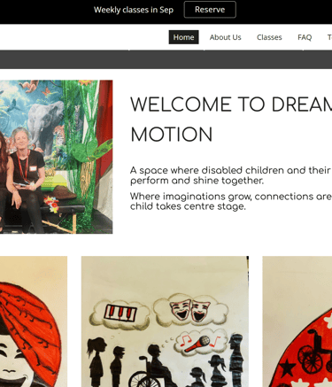 Dreams in Motion: The Special Theatre Academy offers unique, inclusive drama classes for children with disabilities and their siblings. They needed a simple yet aesthetically pleasing online presence for the launch of their summer 2025 programme and beyond. The site needed to host confidential data, showcase the founders, ethos and background of the company and link back to the partner theatre site.